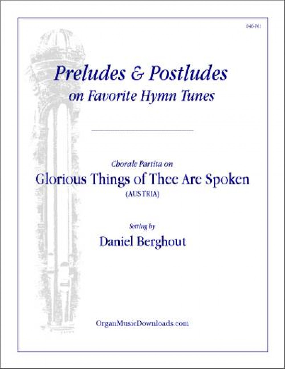 The four variations comprising the Daniel Berghout's Chorale Partita on "Glorious Things of Thee Are Spoken" are based on the John Newton hymn text, as published in an 1835 hymnal.